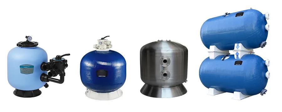 过滤器的种类较多,目前广泛使用的多数为颗粒压力式过滤器,其过滤效果好、性价比高,使用寿命长,缸体材质有塑胶、玻璃纤维、不锈钢等,